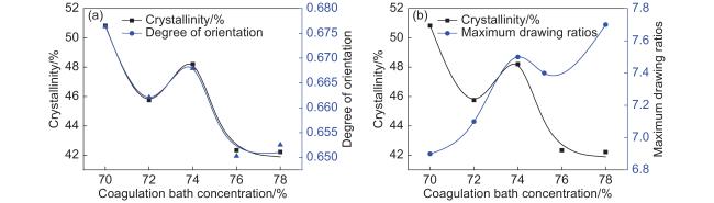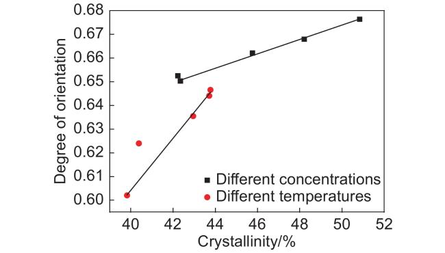 2.1 不同凝固浴浓度下PAN原丝的取向行为