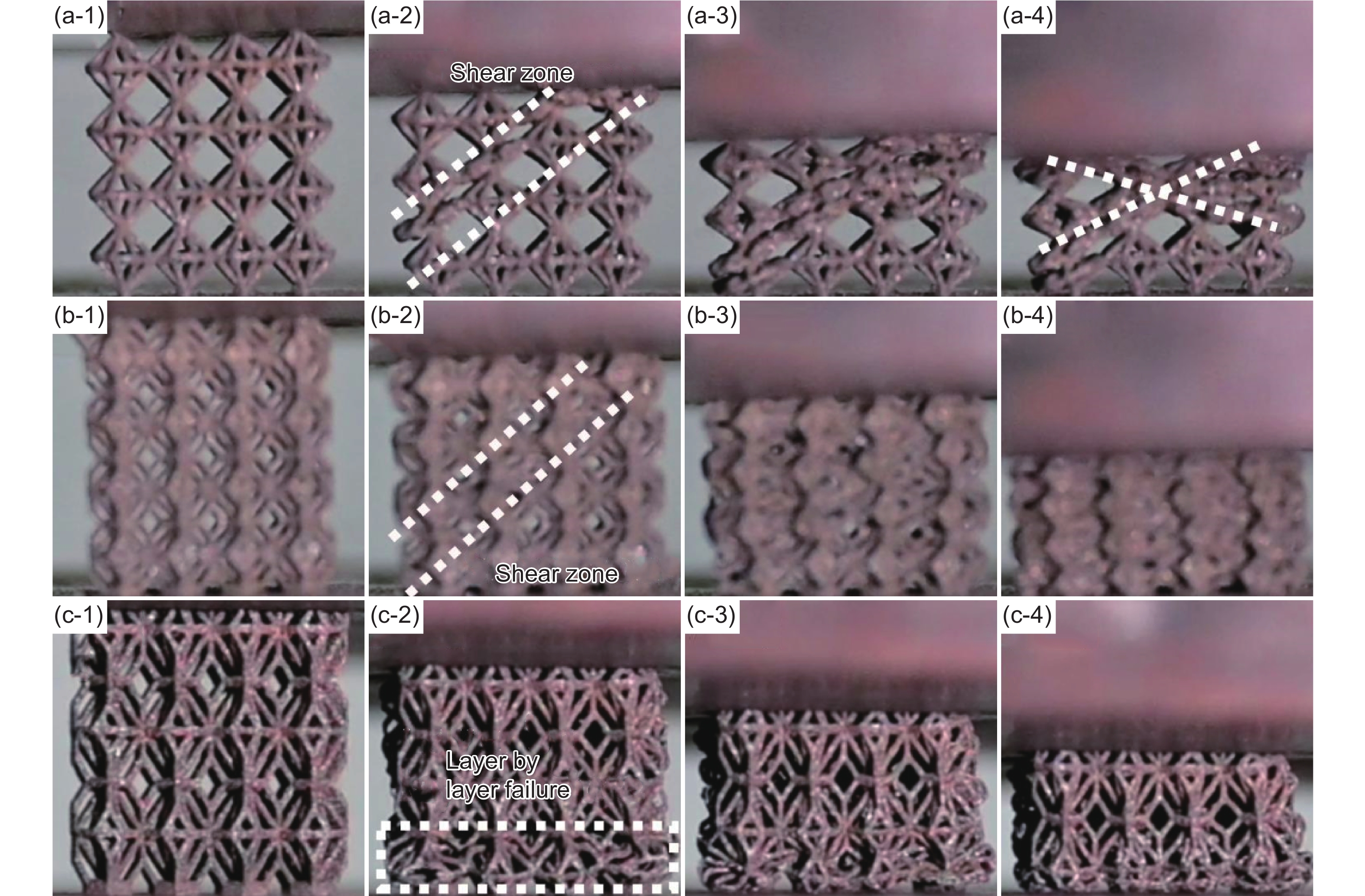 点阵结构因其优异的力学性能,在航天器轻量化结构和缓冲吸能装置上展现出广阔的应用前景。本工作提出基于八边形双棱锥结构和Kelvin结构的混合结构1,并通过拉伸处理得到长宽高比为2∶2∶3的混合结构2,采用选区激光熔融制备对应的点阵结构。通过实验和仿真系统地研究混合结构的力学性能、吸能特性及变形机理。结果表明:混合结构的力学性能和吸能性能均得到显著增强;当相对密度相同时,混合结构1的吸能效率提升15.7%,混合结构2的比强度和比吸能分别提升93%和92%。在变形机制方面,混合结构1均匀坍塌,呈现出以弯曲为主导的变形机制;混合结构2则是全程自下而上逐层坍塌。为了进一步改善混合结构变形机制和提高力学性能,对混合结构的几何参数进行优化,发现改变内外杆件直径比例λ可以实现对混合结构的调整优化。λ=0.75时,混合结构1的综合性能最优,其比强度和比吸能分别提高21%和10%。